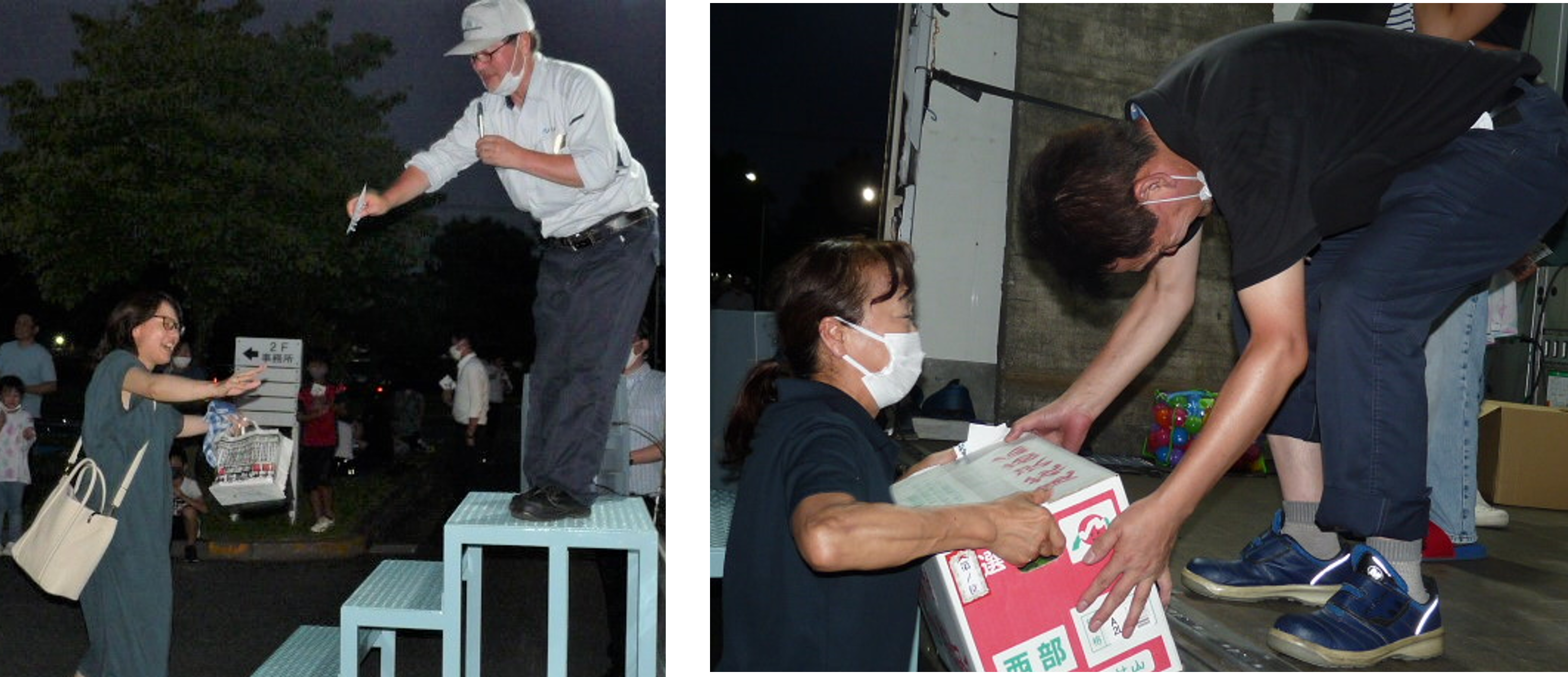 夏祭りは、終業の17:00~開催となったが、当日は晴天に恵まれ、外もまだ、明るい状態でのスタートとなりました。