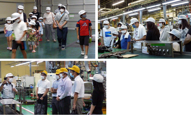 7/29(金) コロナ禍で実施を見送っていた夏祭りを3年ぶりに実施することができました。夏祭りに先駆け、社員の家族、協力会社の方、NSSKの方々に工場を案内し、日頃の仕事内容を見てもらいました。