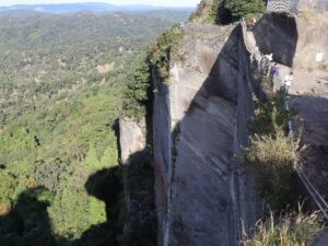 スリル満点 崖の上から地獄を除く「地獄のぞき」。採石場跡に突き出した落差100mの断崖は圧巻!