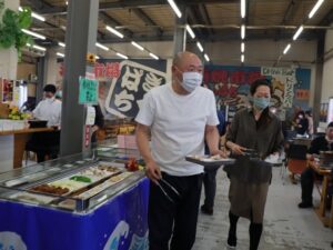 最初は、お店の方から浜焼き食べ放題のルールの説明。