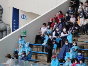 大迫力のシャチショー。ずぶ濡れ対策でカッパの着用。