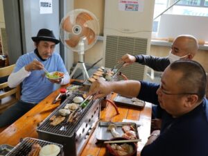 トングを手に、焼き上がりを待つ時間。磯のいい香りに包まれます!