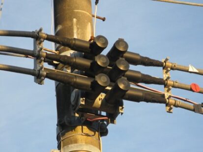 22kV架空ケーブルを電柱上で直線接続および分岐接続します。